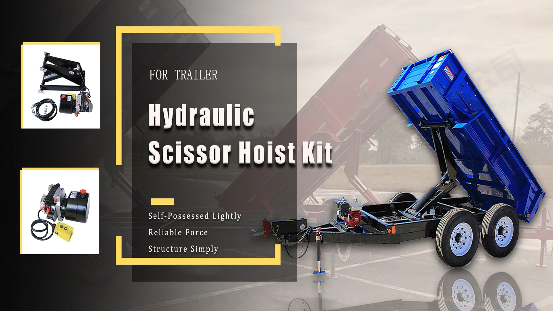 The structure of this kit is scissor-type, support more stable. Double acting type, hydraulic power up and down. Model's load capacity have 3 tons, 6 tons and 10 tons. Can be used in dump trucks, platforms, etc. Lighter weight, easy installation, and there are also more optional accessories to meet your needs.